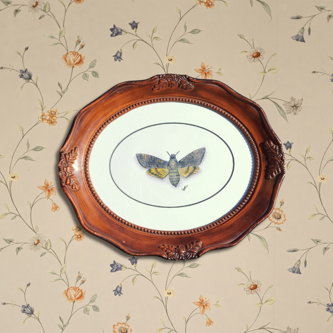She's back! Due to popularity I have drawn another Death's Head Hawk Moth. This one comes in a 26 x 22cm oval frame. There are no prints of this edition, just the framed original.
